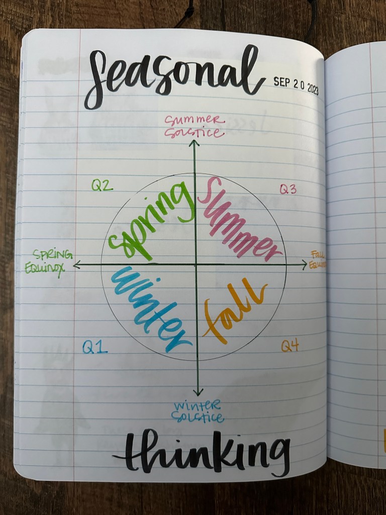 I’ve been thinking about thinking seasonally. I live in a place that gets all four seasons, with an emphasis on long hot summers and long cold winters. The rhythms of my life change with the seasons and the light. Why not embrace that change?