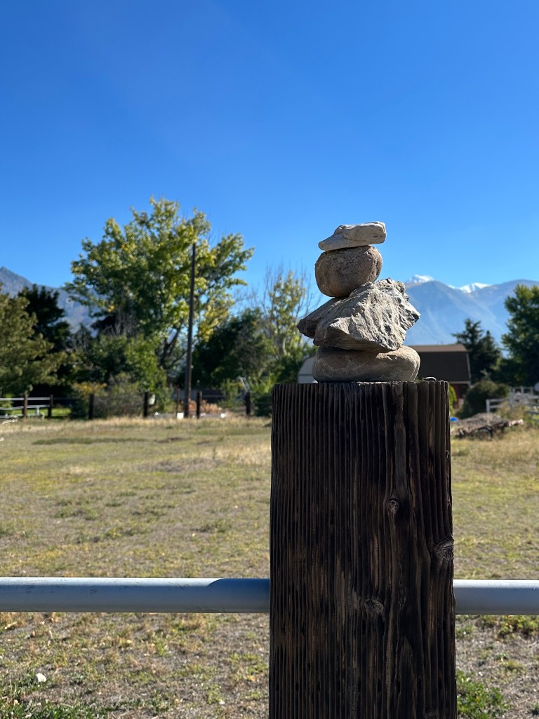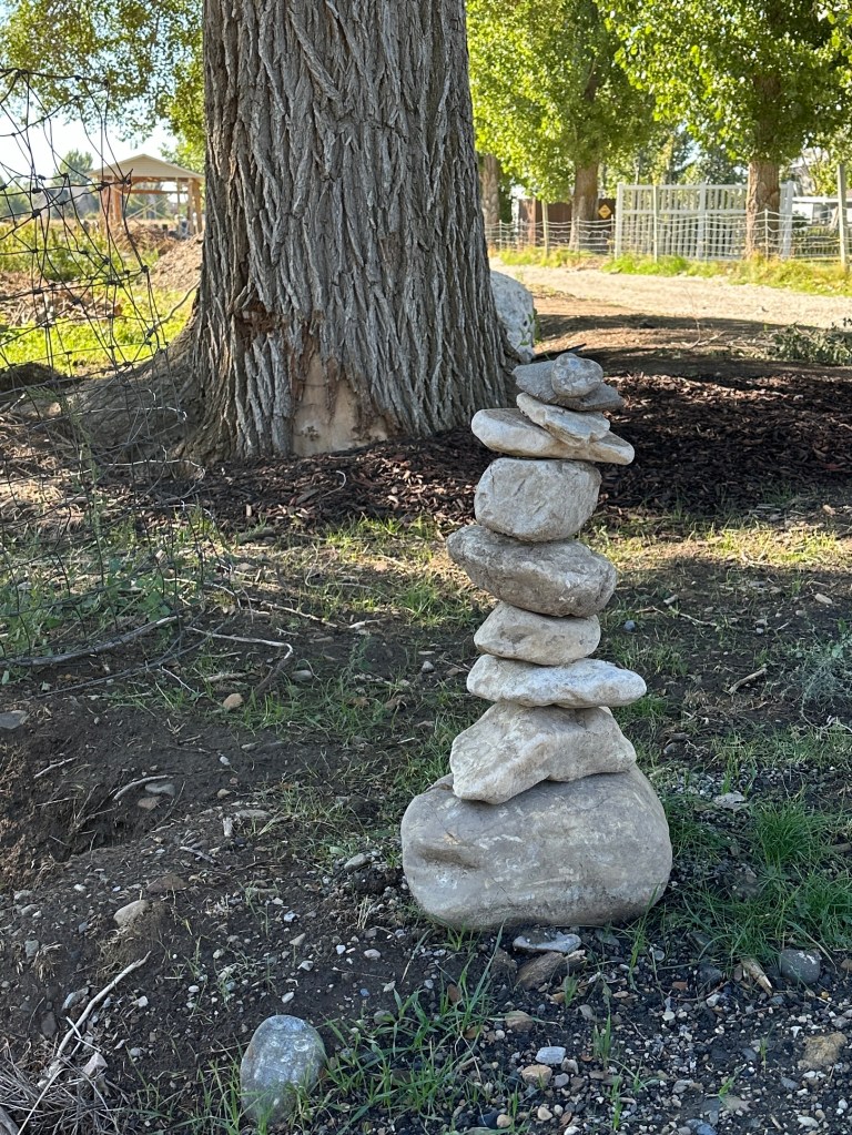 I noticed these two cairns in my daily travels. The one on the left appears and then gets knocked down. But it always eventually reappears. The one on the right is newer, sturdier. They make me happy each time I see them. I like to imagine the hands that made them.
