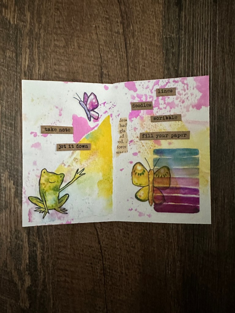 Yes, that’s a technical term: ink smooshing. It’s one of my favorite techniques for a quick and easy background in my notebook. Here’s how you do it.