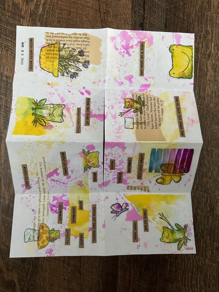 There are lots of tutorials online about how to make this kind of zine from one sheet of paper. One of my favorites is this video from Austin Kleon. Another good one is this visual tutorial from BookRiot. Here are some other resources if you want to delve more into the land of zines: