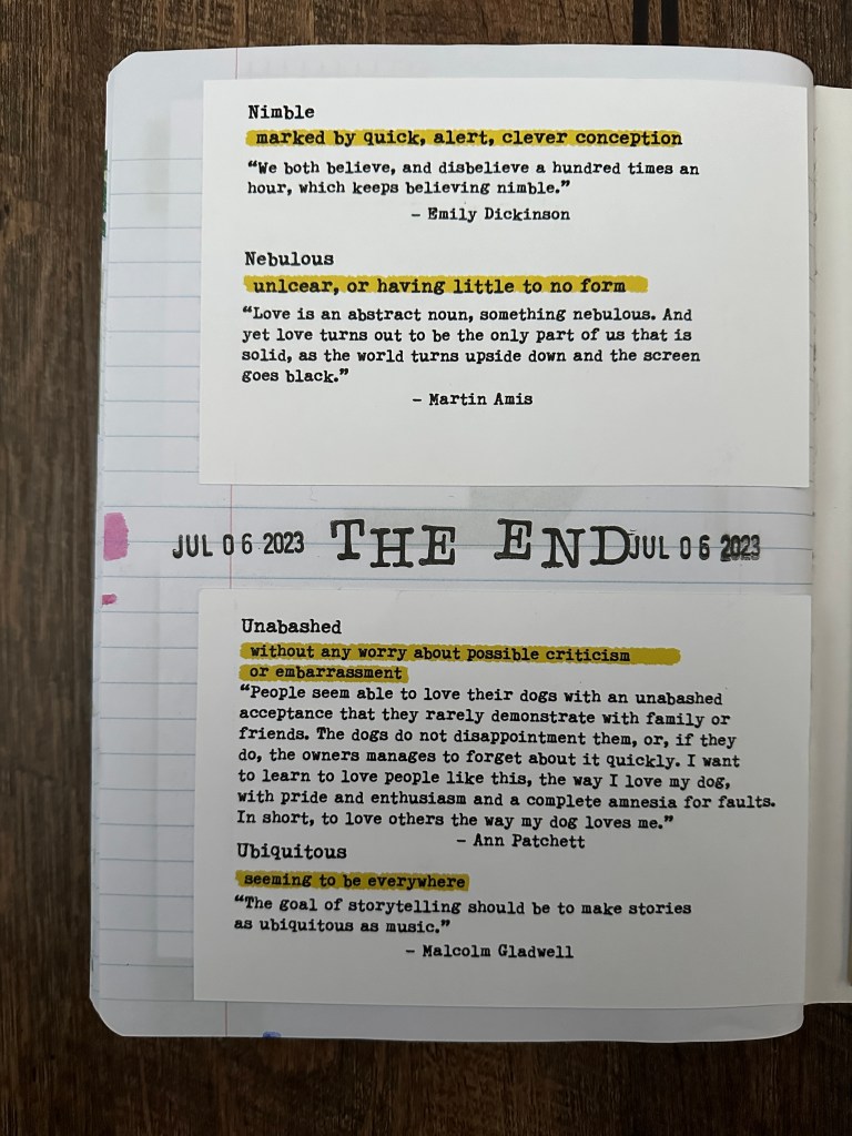 Reaching the end of a notebook is always a little bit exciting and a little bit sad, as firsts and lasts tend to be.