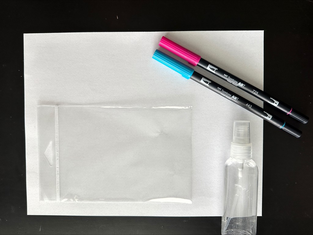 Water-based markers (I’m using two Tombow Dual Brush Pens.)