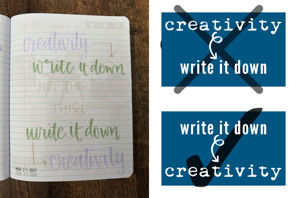 Keeping one notebook may not work for everyone. Multiple, dedicated notebooks is just as valid and will work better for some and at different times. But keeping one creative notebook is something I recommend you try.