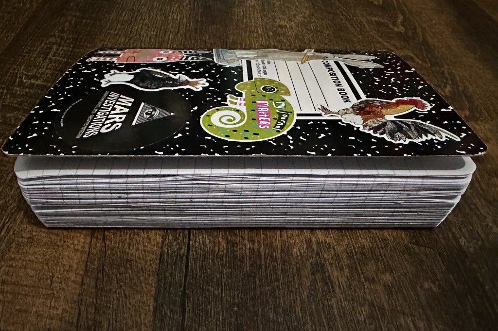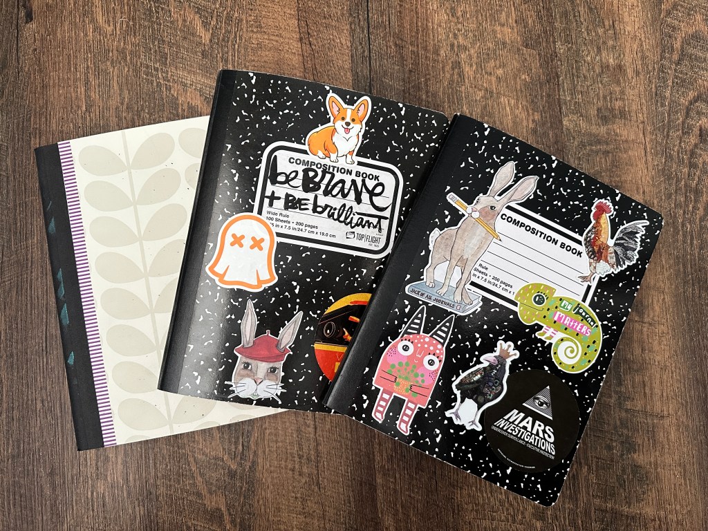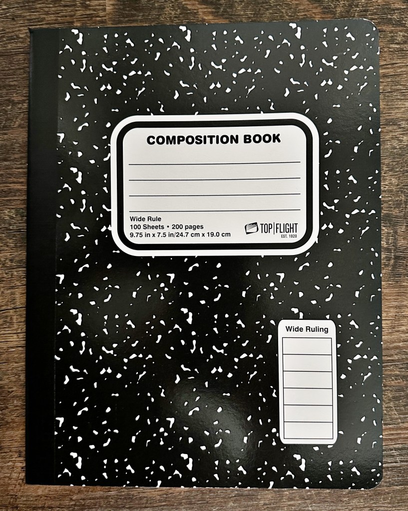 A composition notebook is a cheap and easy way to start a creative notebook, but use whatever works for you. Go smaller; go bigger; go handmade; or go for luxury. The notebook itself does not matter. What matters is putting things – your thoughts and ideas and random life stuff – down on paper.