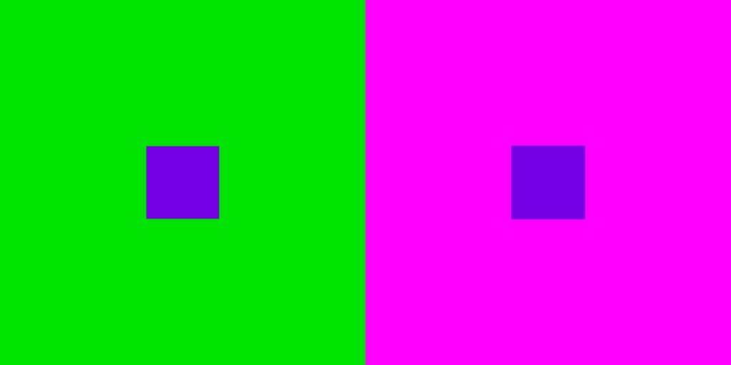 Or what happens when the color purple is surrounded by green versus purple surrounded by pink.