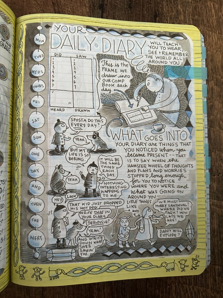 In her creative notebook classes, Lynda Barry requires her students to keep what she calls a “daily diary.”